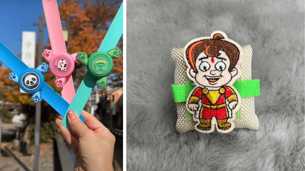 स्मॉल कैरेक्टर वाले कार्टून राखी, जो बेहद साधारण लेकिन आकर्षक है।